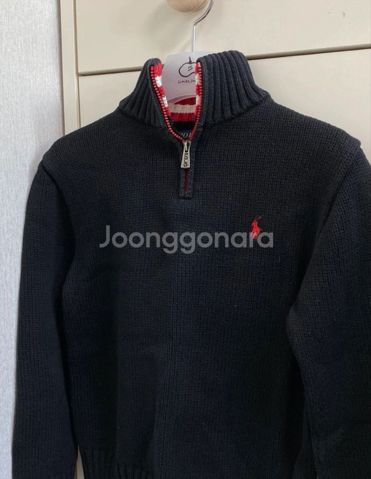 폴로 반집업 니트입니다 검정색상이고, 니트 소재로 되어있습니다 상태는 사진과 같이 양호합니다 두께감있는 니트라 5~7세 가능 에눌 교환 반품X