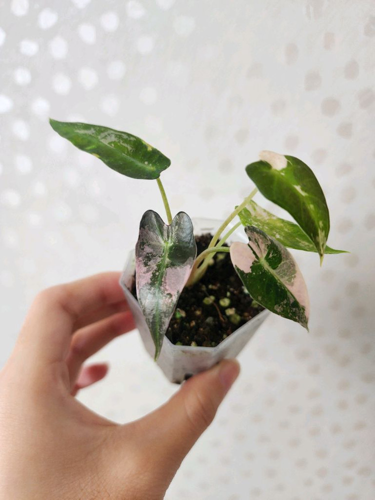 희귀한 알로카시아 밤비노 핑크 바리에가타 식물이에요. 잎에 핑크와 화이트 무늬가 무천이로 아름답게 들어있습니다아직 유묘라서 온실이나 밀폐된 컵에서 키우시면 됩니다 키우고 싶으신 분은 연락주세요~