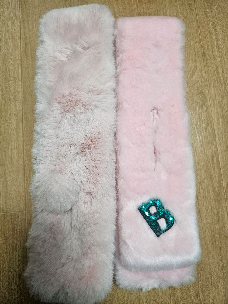 귀여운 핑크색 아동용 퍼 머플러예요. 블루 글리터 B 로고가 포인트로 되어있어서 아이들이 좋아할 것 같아요. 상태 양호하고 따뜻해서 겨울에 착용하기 좋습니다.