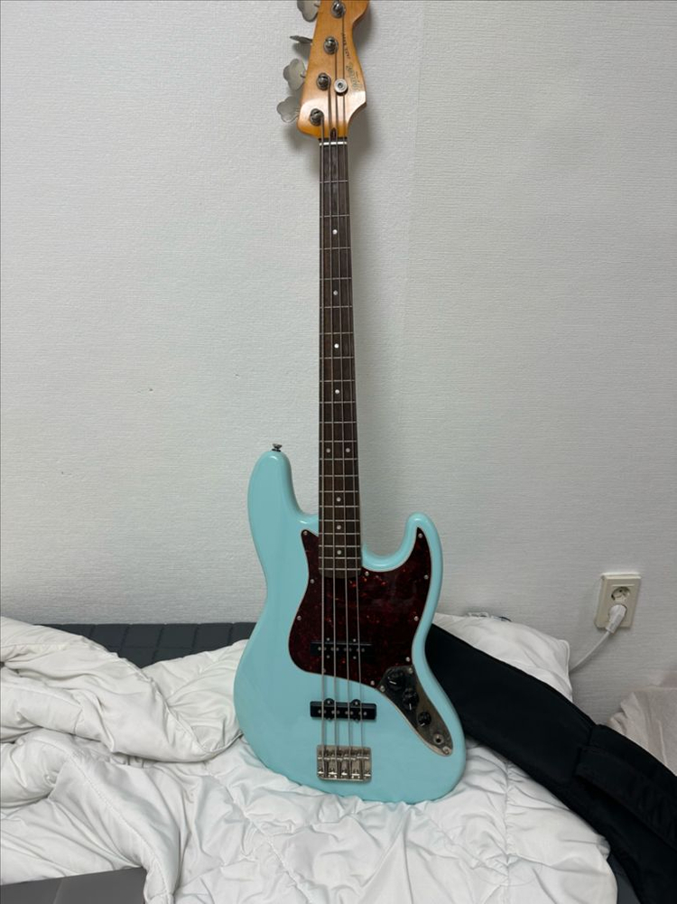 개인정보(거래정보)를 주고받는 행위는 사기에 노출될 수 있으므로 즉시 중고나라로 신고해 주세요민트색 베이스 기타입니다. 상태 양호하고 연주하기 좋은 컨디션이에요. 음악 취미 생활하시는 분께 추천드립니다!