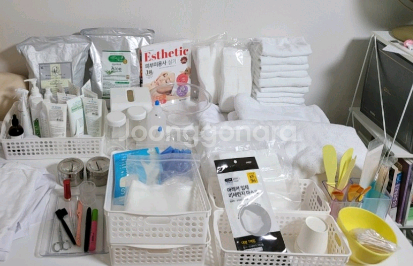 피부미용사 실기재료 일괄 판매합니다. (수건) 소타월 10개 중타월 1개 대타월 2개 헤어터번 2개 (수험자&모델 복장) 모델 핑크 겉가운 모델 핑크 속치마 모델 슬리퍼(2개) 수험자 바지 수험자 가운 수험자용 흰실내화(240 과 230 사이즈 중 택1) (화장품) 화장품 기한지났습니다. 클렌징 로션 크림팩 중성 크림팩 지성 크림팩 건성 2개 마사지 크림 마사지 오일 스킨 토너 영양크림 알로에 릴렉싱 젤 딥클렌징- 스크럽 딥클렌징- 고마쥐 딥클렌징- AHA 엔자임 효소파우더 아이메이크업 리무버 아이&립 크림 탈컴파우더 분사형 알코올 소독제 <화장품 양은 3분의 2 또는 4분의 3 정도 남음> 모델링팩(미개봉)기한지남 석고팩 기한지남 립스틱, 마스카라, 아이라이너 (도구) 고무볼 2개/ 대, 중 팩붓 5개 스파츌라 대자 2개 스파츌라 중자 1개 스파츌라 소자 2개 쟁반 1개 해면볼 1개 물 넣는 약통 2개 유리볼 6개 원형 통 2개(석고가루, 고무모델링 가루 넣는 통) 계량컵 1개 진동 스톱워치 1개 양주잔 1개 스텐 솜통 2개(소리안나게 유리테이프로 테이핑 함) 눈썹칼, 눈썹가위, 눈썹 족집게, 눈썹 빗 연필꽂이 2개 큰 바구니 2개 해면 바구니 (긴거) 3개 큰 거즈(20장 가량) 작은 거즈 탈지면 화장솜 라텍스 장갑 왁싱용 부직포 약 10개 왁싱용 나무 막대 10개 면봉 각티슈 넣을 플라스틱 케이스 미용서적 1위 에듀웨이 피부미용사 교재 (교재 중앙에 접착력이 약해 책이 낱장처럼 되어있음) 마스크 저는 강사님을 집으로 모셔 10일만 배우고 합격하여 물품이 모두 사용감 적고 매우 깨끗하며 상태 좋습니다! 피부미용사 시험 합격했는데 행운의 좋은 기운 받아가세요! 양이 많아서 택배시 2박스로 배송됩니다.