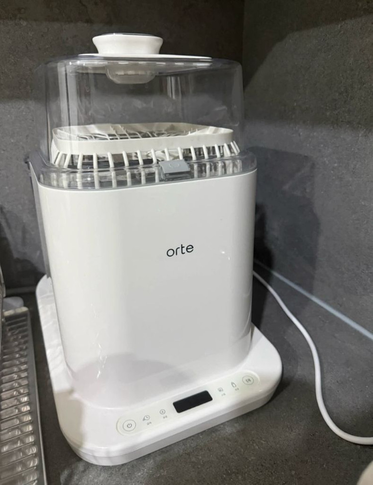오르테 젖병 세척기 입니다 고온 세척, 소독, 건조까지 한번에 다 되서 유용합니다 본사에 보내서 깨끗하게 크리닝했고 거치대까지 새로 받아서 새제품과 다름 없습니다