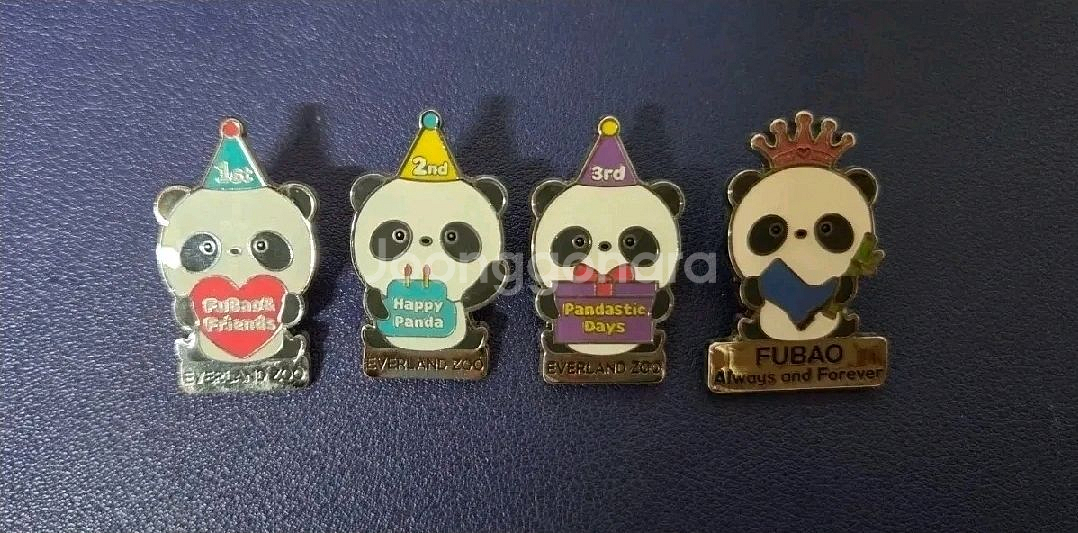 푸바오 기념일 뱃지 4종 세트입니다. 에버랜드 푸바오 생일뱃지 정품입니다. 푸바오 뱃지가 한 세트입니다. 가방이나 옷에 달면 귀여워요. 덤 챙겨드려용 반품 안됩니다. CU반택, 일택가능 반택 2000, 일택 4000원 입니다.