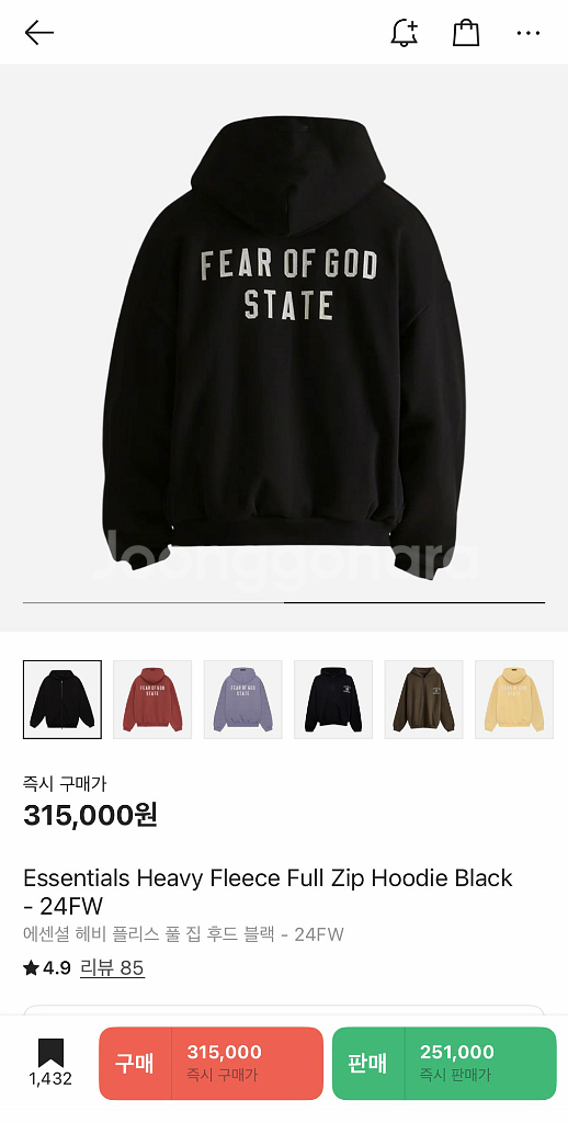 피어오브갓 에센셜 백로고 후드집업