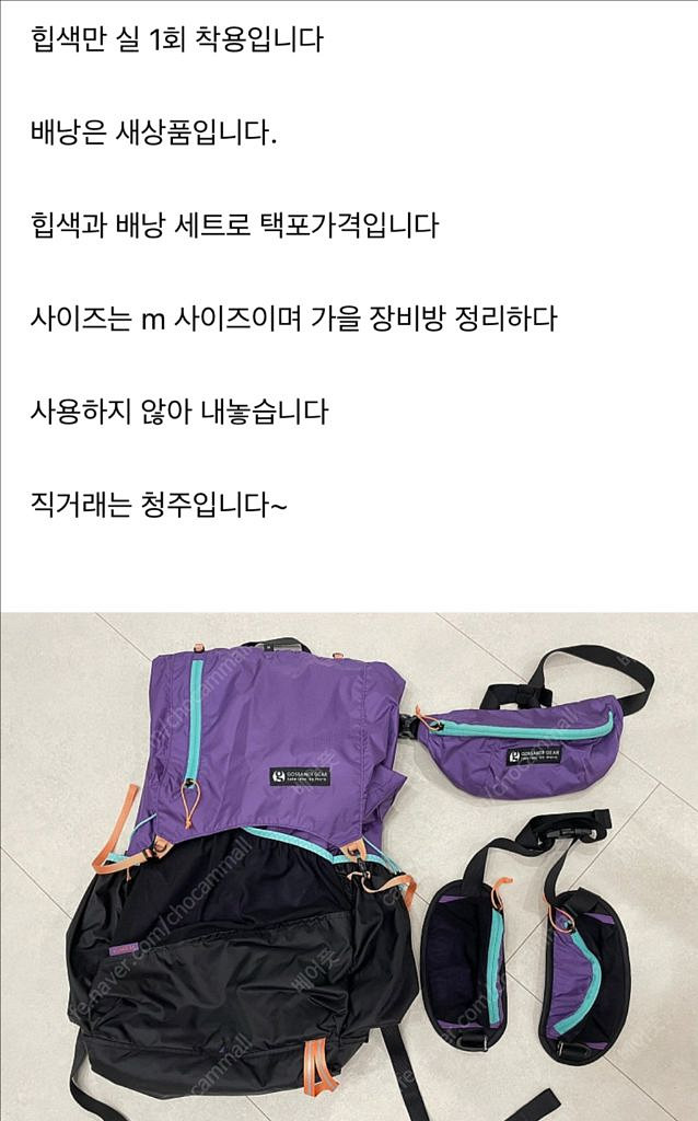 힙색만 1회 실착 배낭은 새상품입니다 전반적으로 새상품이라 보셔도 됩니다 세트로만 판매할게요