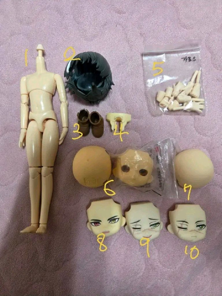 넨도로이드 돌 오비츠11 이고요 1번,5번 제외 전부 오비츠 11용이라 생각하시면 됩니다 바디, 헤드, 손 파츠, 신발입니다. 1번 5번 오비츠 22 남아 바디, 손파츠 일괄 / 3.0 2. 헤어 파츠 / 1.8 3. 갈색 신발 / 0.5 4. 헤드 호환 파츠 / 0.15 6. 개안 헤드 세트 (일부 미개봉, 두피 쪽 상태안좋음) / 0.3 7. 가발용 헤드 세트 (가발용 / 얼굴 x) / 0.4 8. 오드아이 얼굴 파츠 / 1.4 9. 상처 얼굴 파츠 1 / 1.0 10. 상처 얼굴 파츠 2 / 1.0 구매원하시면 연락주세요 옷도 있습니다 택배비 수도권 3,200 / 타권 3,700 반값 / 알뜰 택배비 2,000
