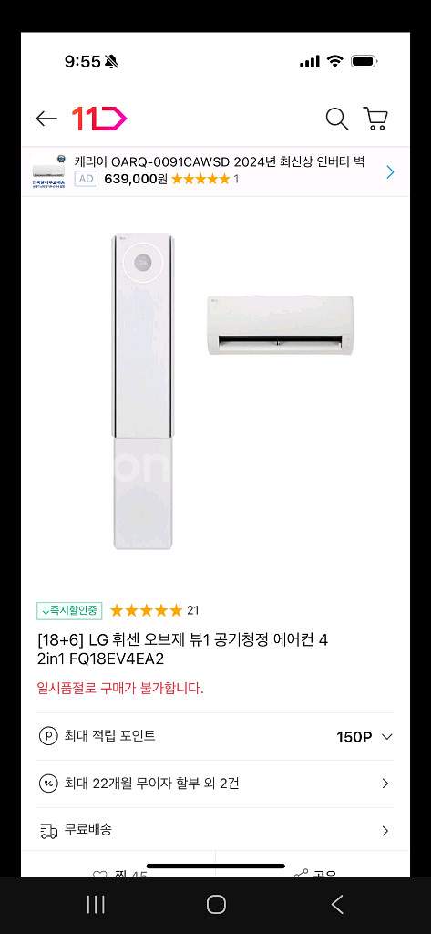 - 스탠드형과 벽걸이형 에어컨 세트입니다 - 에너지소비효율등급은 2등급입니다 (전기세 얼마 안나와요~평소보다 2~3만원 정도) - 1년 4개월 정도 사용했습니다 -LG ThinQ 앱으로 스마트하게 제어할 수 있고, 인공지능 냉방으로 쾌적함을 유지할 수 있습니다. -하루에 건조를 두번씩 해서 깨끗하게 사용했어요