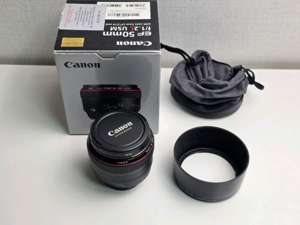 캐논 EF 50mm F1.2 L USM 렌즈 풀박스 팝니다. 작동은 잘 되고, 렌즈 안에 미세한 입자 약간 보이는데 촬영 결과물 보니까 반점 생기거나 가리거나 그런거 없습니다. 구매시 B+W 필터 서비스 드립니다. 새거는 아니지만 렌즈 보호필터 생각하시면됩니다. 동탄에서 와주시면 90에 판매하겠습니다. 네고는 어렵습니다.