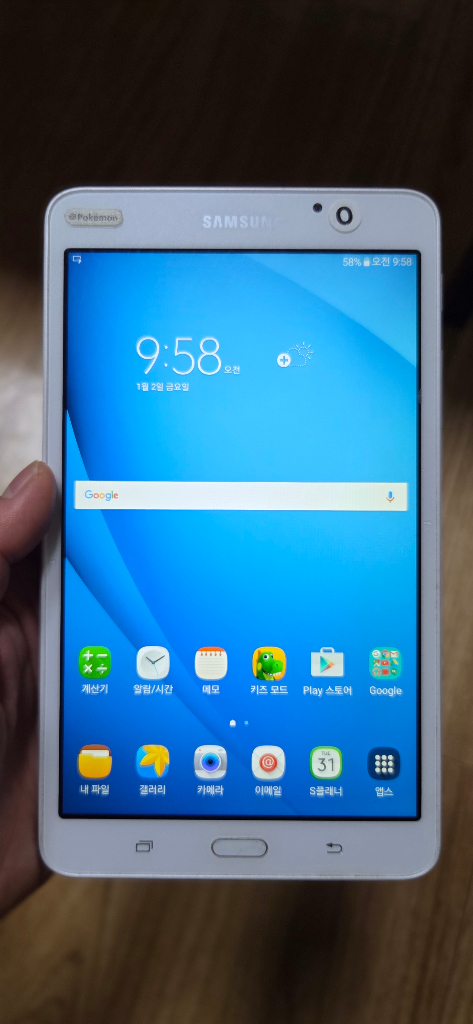 삼성 갤럭시탭 A(2016) 화이트 색상이에요. 화면도 깨끗하고 전체적으로 상태 양호합니다. 베터리상태도 괜찮습니다