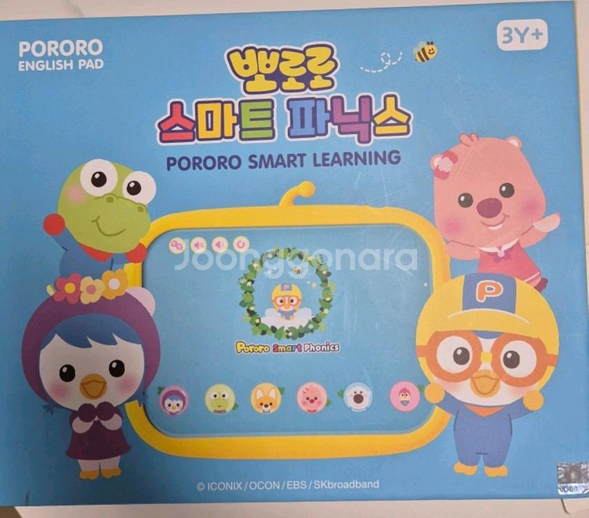 아이들이 좋아하는 뽀로로 캐릭터의 영어 학습용 전자 패드예요. 칩에서 노래도 나오고 파닉스를 알려주도록 구성되어 있어서 재미있게 영어를 배울 수 있어요. 상태 양호하고 잘 작동합니다!