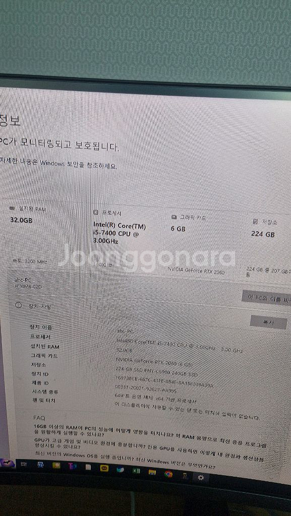 그래픽카드 2060 cpu i5-7400 ram 32gb 아니고 16입니다 ssd 256gb 파워 서플라이 700w 윈도우 10 직거래만 가능