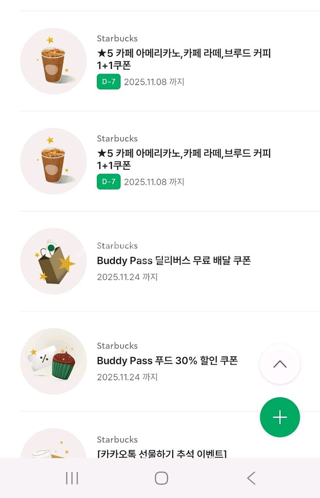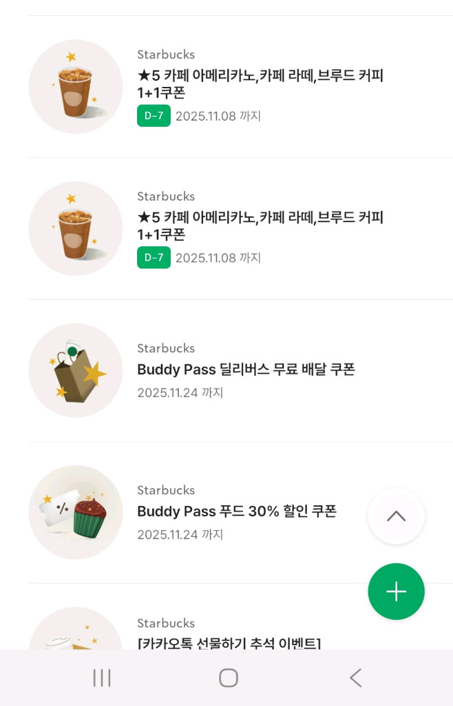 개인정보(거래정보)를 주고받는 행위는 사기에 노출될 수 있으므로 즉시 중고나라로 신고해 주세요스타벅스 카페 아메리카노 1+1 쿠폰이에요. 2025년 11월까지 사용 가능하니 빠른 거래 원해요!