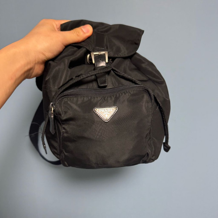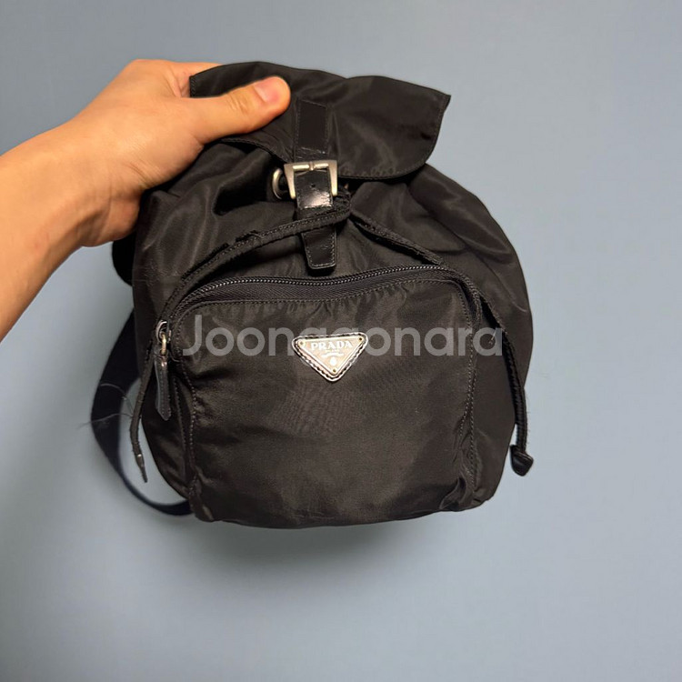 프라다 정품 나일론 소재 백팩이에요. 블랙 컬러로 깔끔하고 실용적인 디자인이 특징입니다. 사용감은 있지만 전체적으로 양호한 상태예요. 가방핸들만 교체되었고 남자인 제가 들기엔 아무래도 사이즈가 작은편이라 내놓습니다. 100% 정품이고 호호빈티지샵 구매했습니다
