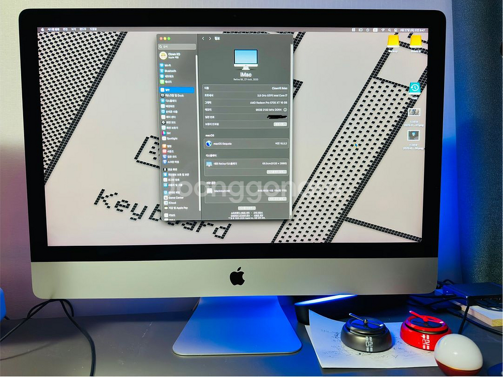 아이맥 2020 모델 판매합니다. 사양은 cpu- 3.8 i7 그래픽- 라데온 프로 5700xt 16gb 용량- 1테라 램- 96 gb 매직키보드, 트랙패드 포함입니다. 거래장소는 인천 미추홀구 입니다. 그외 애플공홈 노란 박스까지 다 있으니 원하시면 드려요. 삼자사기 많아서 직거래, 현찰거래만 합니다. 010-육육6삼-칠구육구 네이버톡 잘 못보니 메시지나 전화주세요.