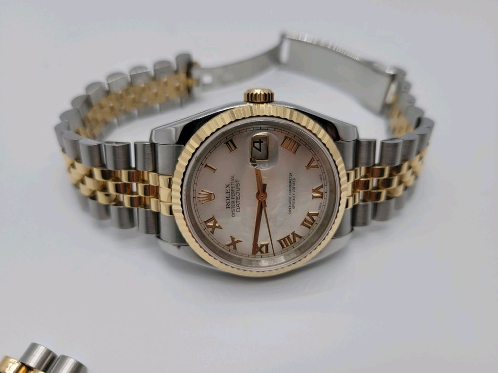 귀한 자개판의 콤비 모델입니다. 품번 116233 (금값도 많이 오르네요 구형 데이저스트와 달리 금부분들이 비어있지 않은 18K 통금들이라 제법 묵직해요) 제품상태 아주 깔끔합니다. 롤렉스 등 명품 취급 샵에서 구매하고 24년 6월 비싼 오버홀 해놓았어요 박스는 없으나 제품판매처 와 오버홀 받은곳의 보증서가 포함입니다 당연 롤렉스 진품입니다! 필요하시면 검증비용 부담하시고 명품시계수리점에 같이 가셔도 됩니다 백자개 로마판으로 보는 각도에따라 영롱하고 아주 이뻐요 자개판 과 전체 히든 클라스프 의 매력을 아시고 찾는분 금액 편하게 제시해주시고 챗주세요 대전 직거래만 하며 5만원권 현금으로만 받습니다. 3자사기 또는 타사이트 포인트 유도 등 사기행각에 넘어가지 않아요
