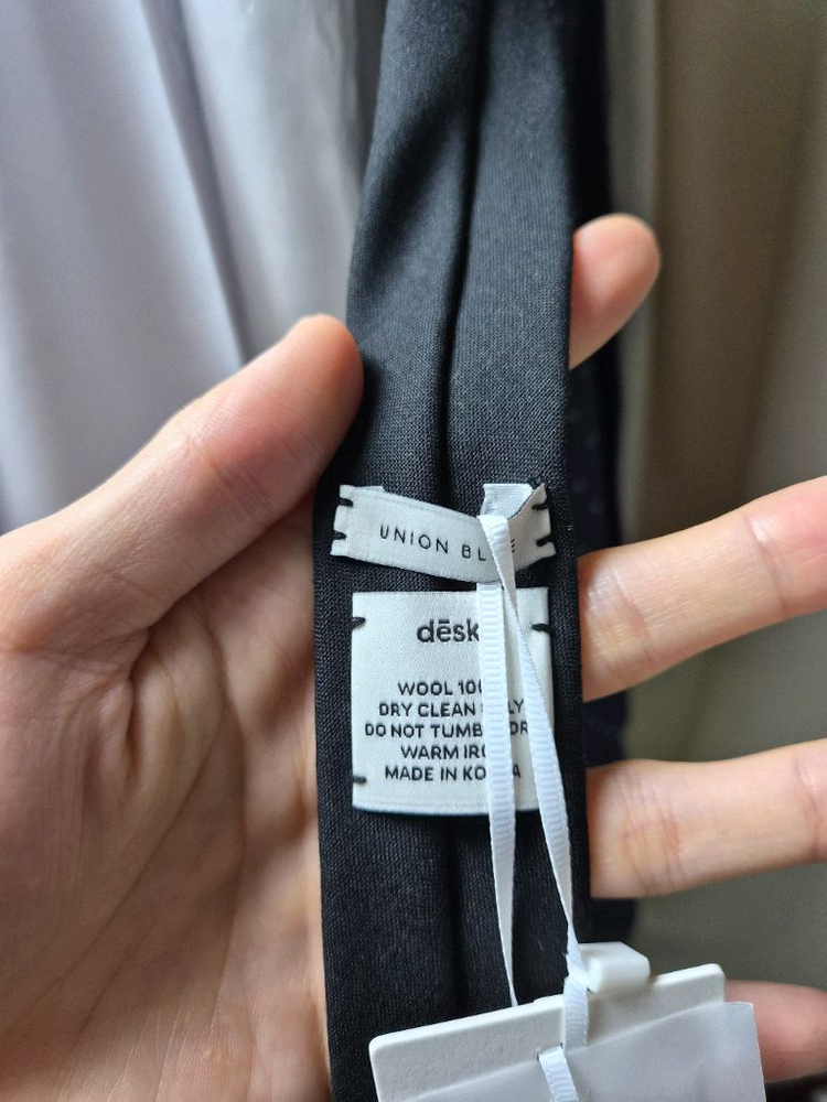 울 블랙 넥타이예요. 태그가 그대로 달려있는 새상품이라 상태가 완벽합니다. 고급스러운 울 소재로 비즈니스룩이나 정장 스타일에 완벽해요! 유니온블루제품 아예 새상품이에요