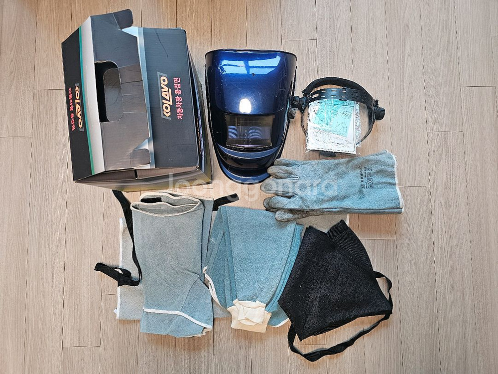 용접보호구세트(용접면 용접장갑외모두세제품) 1.용접면(사용감있음) 2.용접두건 3.용접앞치마 4.용접 팔토시 5.용접각반 6.용접장갑(사용감있음) GS25반값택배비포함 38,000원