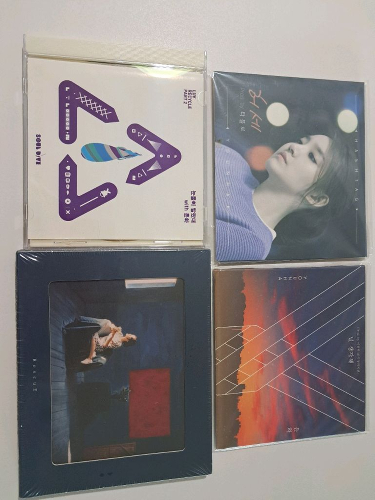 윤하 디싱 음반 3장과 접규 5집 RescuE(미개봉) 팝니다.디지털싱글 '허세'와 '널 사랑해'는 리핑 후 비닐에 보관해와서 상태 매우 좋은 편입니다. 일단, '허세'와 '널 생각해'는 각각 15만원 정도에 판매예정입니다. 나머지는 아직 미정입니다. 관심있으신 분들은 편하게 문의주세요^^~