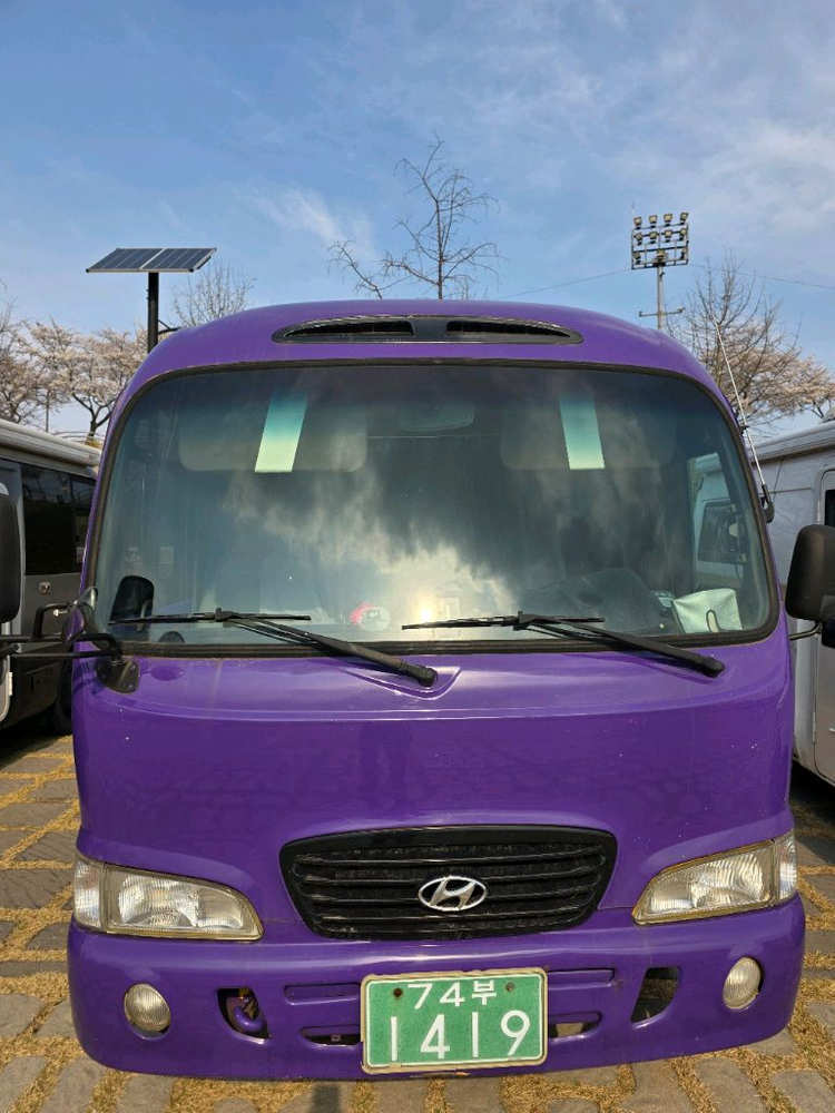 현대 카운티 캠핑카 판매합니다. (@경북구미) 차종: 현대 카운티 숏바디 5인승 캠핑카(구변완) 연식: 05년식 색상:보라노랑 투톤 연료:경유 차량제원:3900Cc 145마력 4.6톤 변속기:수동 스틱 주행거리:약19만 용도:주말캠핑용 (1회/월) 보험료:30만원 기타세금:자동차세 6만/년.환경부담금15만/년 DPF저감장치 부착완료 캠핑카 주요사양 (어지간한거 다 들어있습니다) 태양광. 산업용배터리 250A×4개.주행충전.한전충전.배터리적산계.청수탱크 120리터.오수탱크.어닝4M.어닝등.무시동히터.TV 32인치. 냉장고80리터.전자렌지.인덕션.맥스팬.전후방블랙박스.하이패스.외부샤워.에어컨.전창문방충망.배터리킬스위치. 1)대형면허 필요 2)승차정원 5인 3)숏바디 길이 6.5M사양으로 대형차량대비 운전 부담.없음 4)내부 화장실 없음 5)히터 신규설치.25년 5월 6)타이어 4짝 교체후 2000km주행 7)에어컨 냉매주입 25년 5월 *연락처 010-3677-7788*입니다.