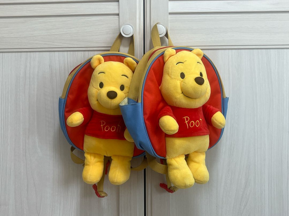 귀여운 곰돌이 푸 캐릭터가 달린 백팩이에요. 미아방지가방인데 끈사용을 안해서 따로 둔것같은데 ... 어디 있나 안보여요 끈없이 충분히 예쁜 가방이구요 지금날씨 딱 메기좋고 상태 양호하고 실용적이면서도 너무 귀여워요! 택포함 2개 가격입니다 예민맘 사절 환불불가