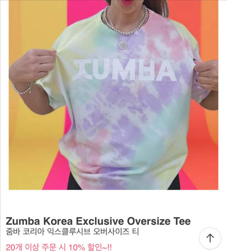줌바 코리아 에디션 오버사이즈 티셔츠예요. 라이트 그린 베이스에 핑크와 퍼플 톤의 예쁜 디자인이 특징이고, 상태 양호합니다. 새제품입니다. 택배비 미포함 가격이에요 사이즈 M 사이즈
