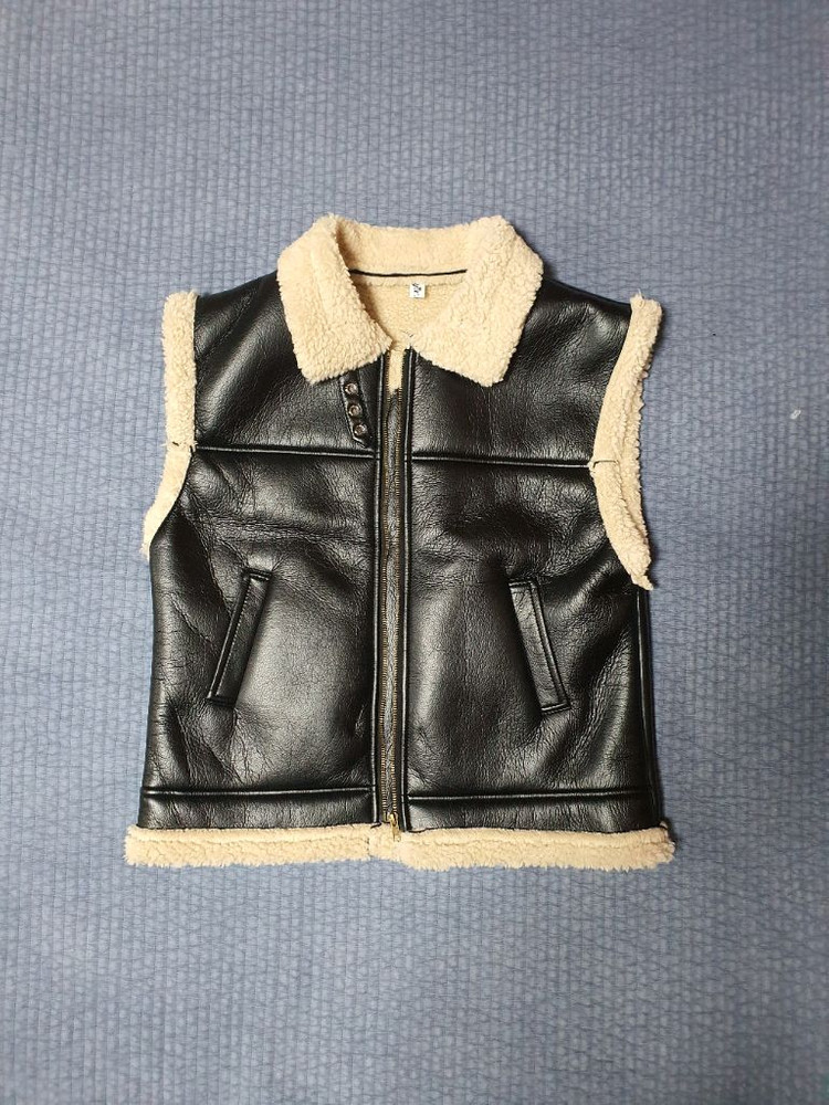 1번착용후 보관중 옷무게 가볍고 깨끗합니다 진짜가죽은 아니고 가죽재질 폴리에스터 사이즈 가슴51 어깨49 총길이 앞52 뒤61