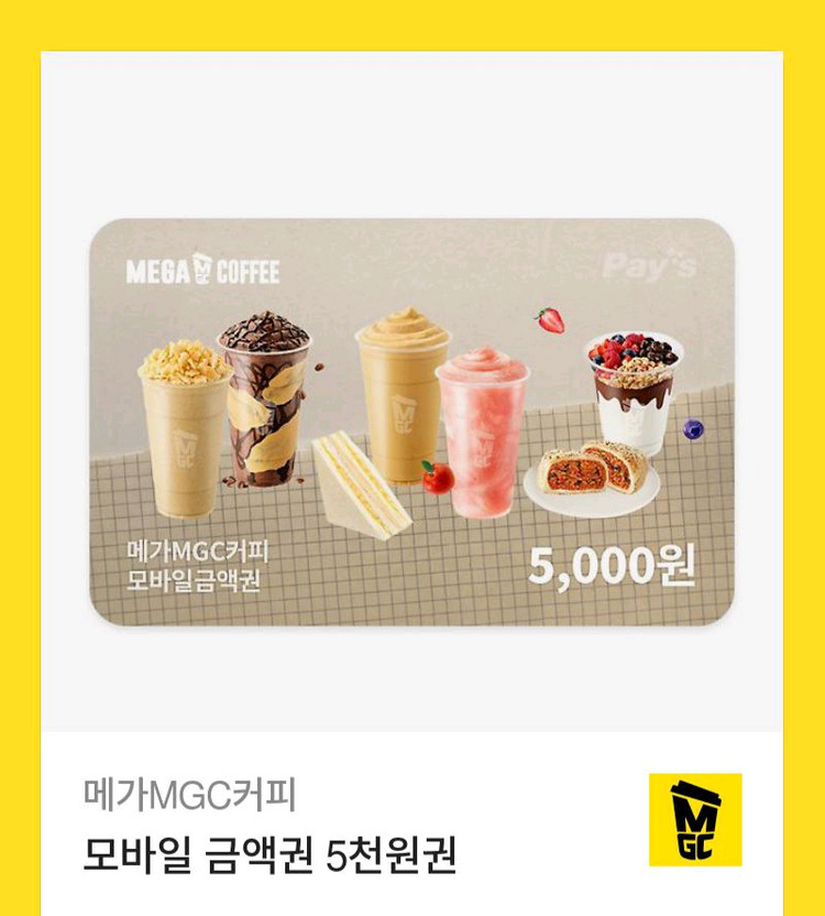 메가MGC커피에서 사용 가능한 5천원 모바일 금액권이에요.~ 채팅 주세요 26년 10월 1일까지입니다.