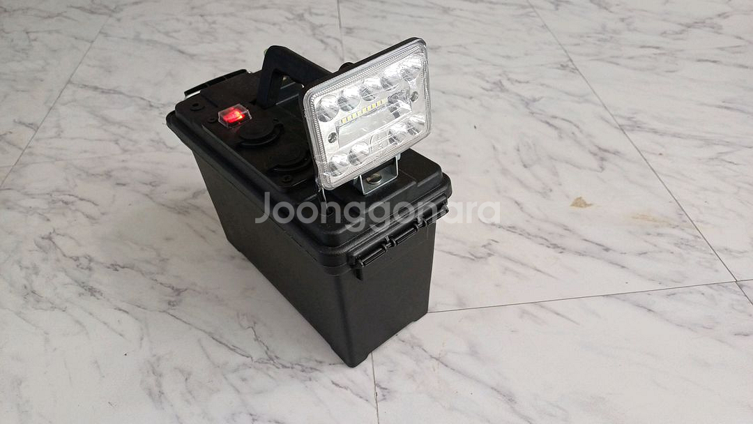 야간에 필수품인 LED써치 라이트 입니다. 12v 시거잭1개.USB 충전단자 2개.전압표시계 써치라이트 강약 스위치 부착. 배터리는 리튬인산철 12V 20A로 이틀정도는 충전없이 라이트가 가능합니다. 바닷가에서 야간에 실뱀장어.갈치등 유도등으로 사용하면 좋습니다. 특히 LED라이트는 방사형이라 빛이 넓게 나갑니다. 신품이고 미래 얼라이언스 회사에 아프터써비스를 받으실수 있습니다. 국내조립...중량 3.7kg 감사합니다. 현재 재고 4개.가정용 충전기 포함 갈치낚시용.해루질용.차박용.캠핑용 라이트. LED 조명이 내장된 휴대용 작업등이에요. 전용 케이스와 함께 구성되어 있고 상태가 깨끗해 보입니다. 작업 현장이나 야외활동에서 유용하게 사용할 수 있어요.