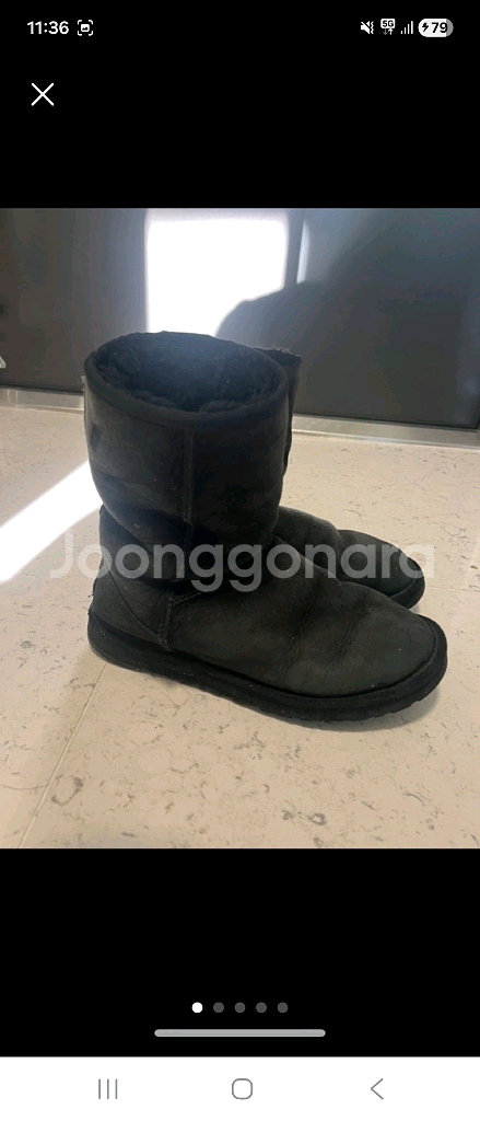어그 240 블랙컬러입니다. 바닥에 밑창 2만원주고 덧대었어요. 사용감이 있어 저렴하게 올립니다. 아주 따뜻합니다^^ 중고거래인점 감안하여 반품환불불가하니 양해부탁드립니다 🙏🏻🙏🏻