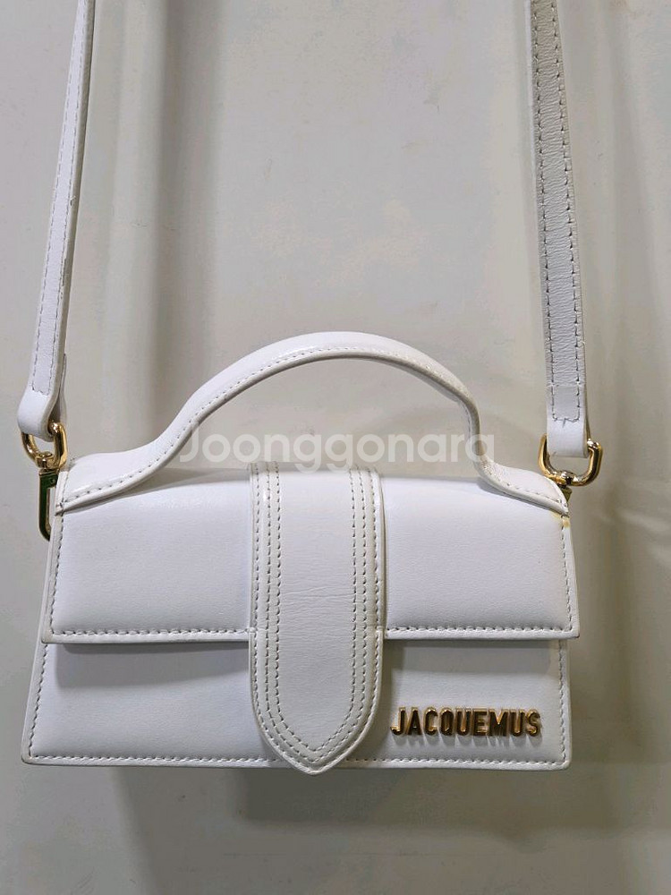 자크뮈스 화이트 컬러의 미니백이에요. 골드 하드웨어와 깔끔한 디자인이 예쁘고, 상태도 양호해요 작지만 실용적이라 데일리로 사용하기 좋을 것 같아요! 가로16 세로8