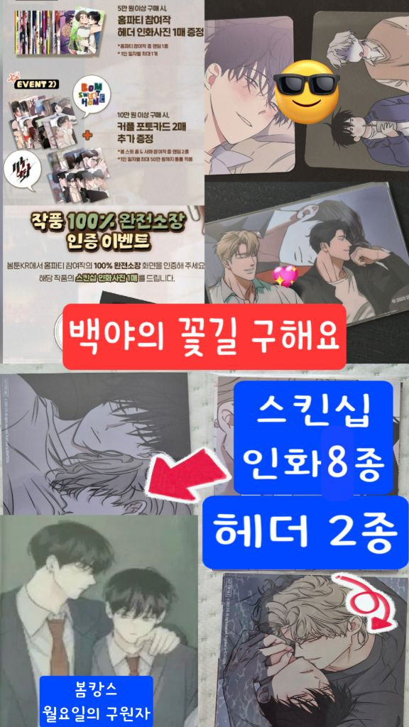 봄툰 팝업 홈파티 사화 특전 교환 물가의밤 백야의 꽃길 플래시라이트 꽃이 지는 연못 아밝 레봄 봄툰도감 백만원의로맨스 봄툰 팝업 홈파티 사화 특전 교환 구해요! 저🙋🏻♀️) 물가의 밤 팝업 헤더 / 스킨십 인화사진/ 포토카드 ✔️5특 헤더 백만원의 로맨스 (레봄) ✔️10특 포카 플래시 라이트 (아밝) ✔️봄툰 도감 / 봄캉스 꽃이 지는 연못 / 월요일의 구원자 (투명포카) 교환자님💕) ✔️백야의 꽃길 스킨십 인화사진 / 헤더 인화사진 / 포토카드 ✔️ 홍실 퀘스트 헤더 인화사진 #물가의밤 #백만원의로맨스 #플래시라이트 #레봄 #꽃이지는연못 #봄툰도감 #봄툰 #봄툰팝업 #레진 #재이미샵 #백야의꽃길 #봄툰시그 #봄툰홈파티 #사화 #아침이밝았습니다 #아밝 #사화특전 #물밤 #홍실퀘스트 #월요일의구원자 #봄툰도감 #봄캉스 #홍실퀘스트