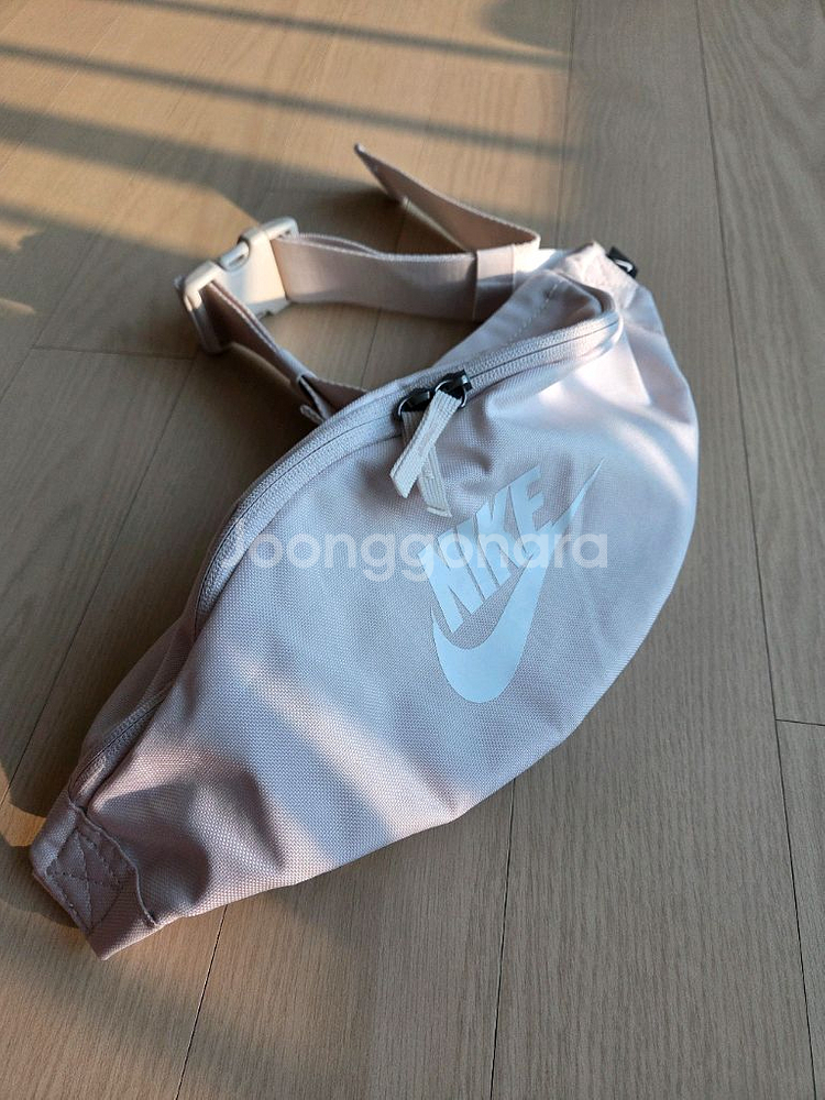 나이키 로고가 새겨진 베이지 컬러 힙색이에요. 상태 양호하고 실용적인 크기로 일상용이나 운동할 때 착용하기 좋습니다.