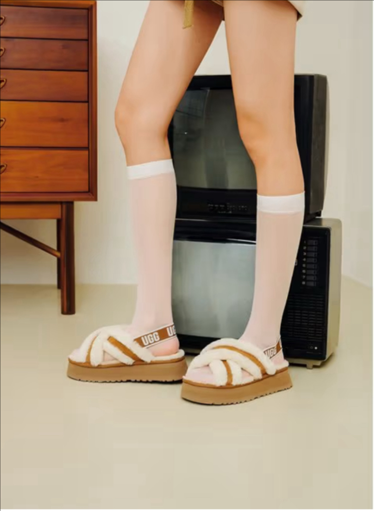 새상품 플랫폼 슬라이드 샌들이에요! 부드러운 양털 안감과 브라운 컬러가 정말 예쁘고, 4.5cm 굽으로 키높이 효과도 있어요. 박스와 함께 드려요. 신세계매장에서 구매 사이즈 6사이즈 새상품입니다.