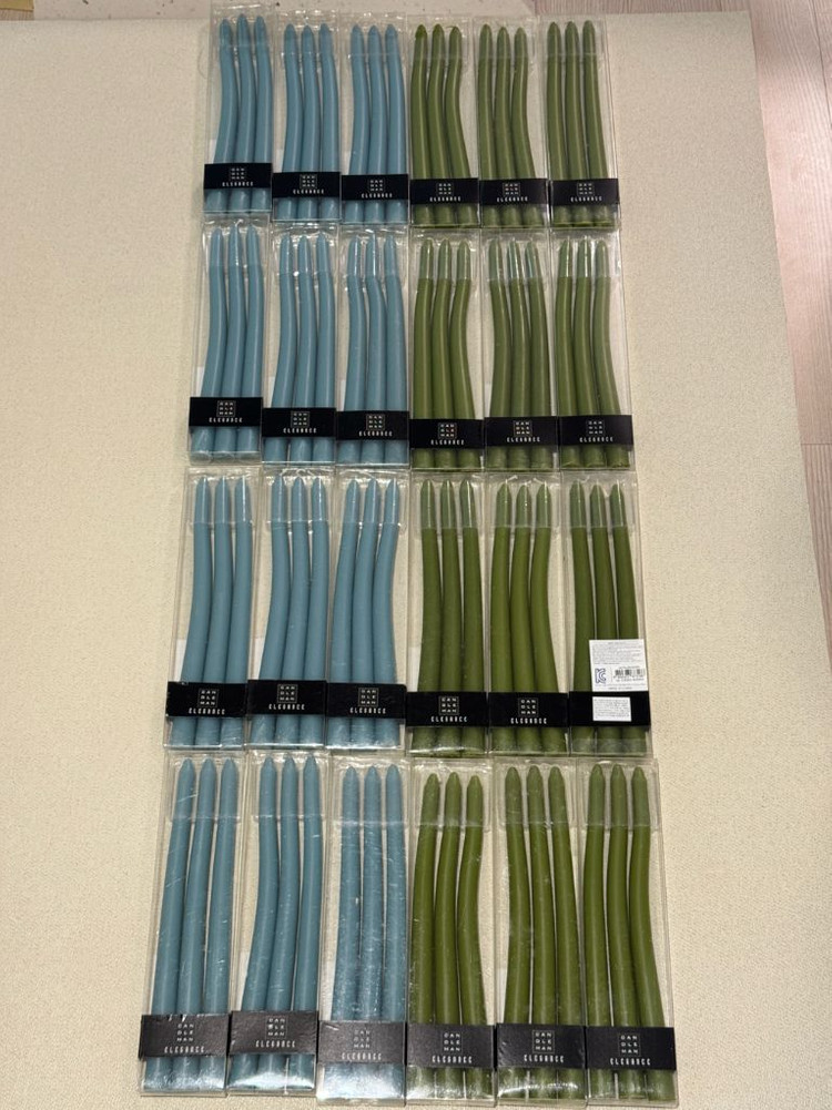 프리미엄 캔들 테이퍼 양초 25cm 6박스 총 18개 입니다 파랑 9개 초록 9개 보내요 구매했는데 사용 못했지만 온도로 인한 변형으로 살짝 휘었어요 총 24박스 있습니다 네고 / 색선택 불가합니다🙏🏻 고급 양초 태우시는 분들께 적합해요 하남시 감일동 또는 과천 주암동 직거래 가능해요 택배는 일반 5천원 씨유끼리 2.5천원 추가 되어요