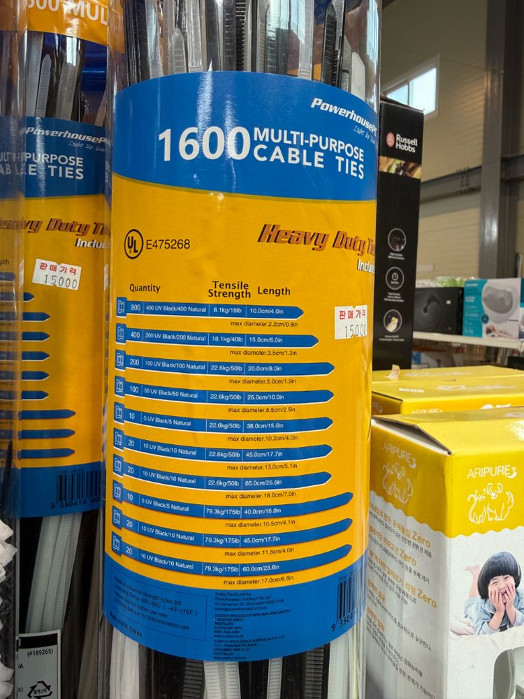개인정보(거래정보)를 주고받는 행위는 사기에 노출될 수 있으므로 즉시 중고나라로 신고해 주세요코스트코에서 판매하는 케이블 타이 1600개입입니다 튼튼한 내구성을 자랑하며, 실내외 모두 사용 가능합니다 다양한 길이의 케이블타이가 들어있습니다. 직거래는 논현초등학교, 택배거래시 3,000원 별도입니다.