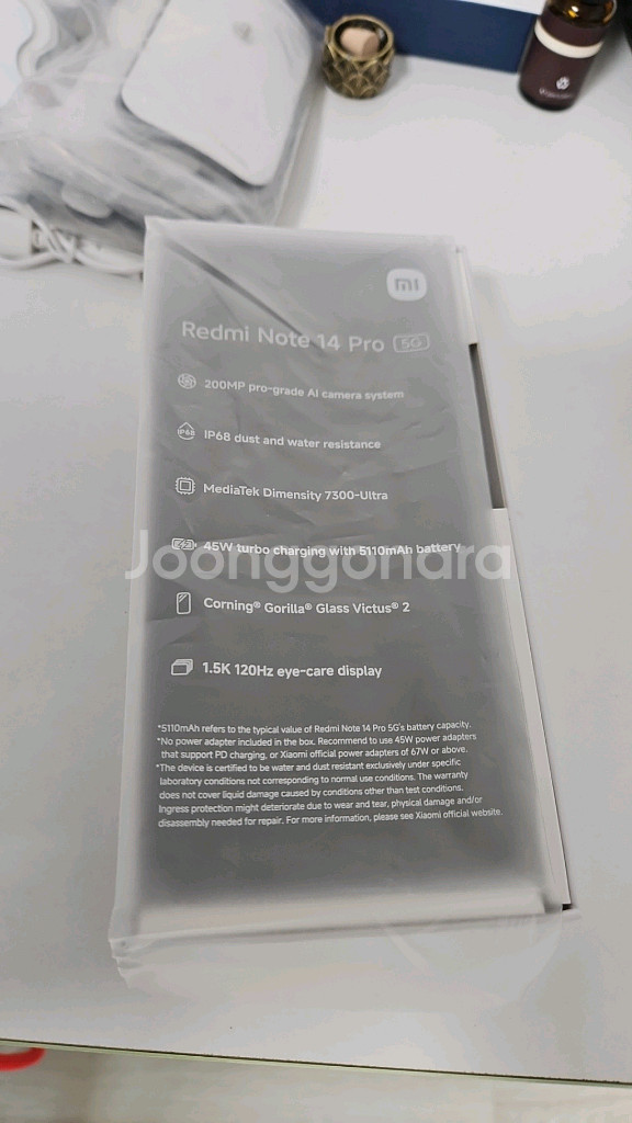 샤오미 레드미 노트 14 프로 5G 새제품이에요. 박스 포장 그대로 보관되어 있어서 완전 깨끗한 상태입니다. HyperOS 운영체제 지원하는 고성능 안드로이드폰이에요! 4월개통후 의무기간만 채운 깨끗한 공기기입니다. 초기비닐그대로있고 악세사리 미사용입니다. 자동통화녹음 가능한 기기입니다. 보호필름이랑 케이스 4개씩 드립니다. 갤럭시A5X급의 성능! 2억화소의 카메라가 탑재된 가성비 폰 스마트폰(바형)/화면:16.9cm(6.67인치)/램: 8GB/용량: 256GB/5G/ [프로세서/AI]디멘시티7300 Ultra/이미지 생성/편집 [카메라]후면:2억화소+800만화소+200만화소/전면:2,000만화소 [배터리/규격]USB2.0/5,110mAh/최대충전: 45W/방수: IP68/가로: 74.42mm/세로: 162.33mm/두께: 코랄 그린&미드나이트 블랙 8.4mm 丨 라벤더 퍼플 8.55mm/무게: 190g