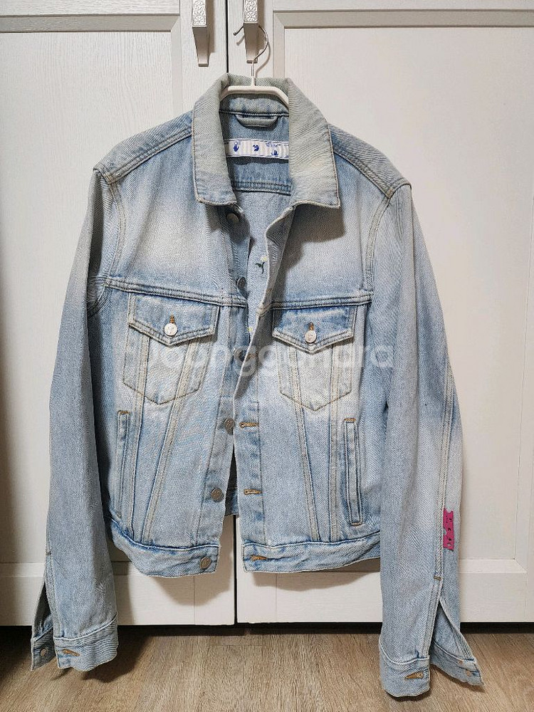 라이트 블루 데님 재킷으로 뒷면에 예쁜 꽃 자수가 포인트예요. 전체적으로 상태 양호하고 개성 있는 디자인이 매력적인 아이템입니다.