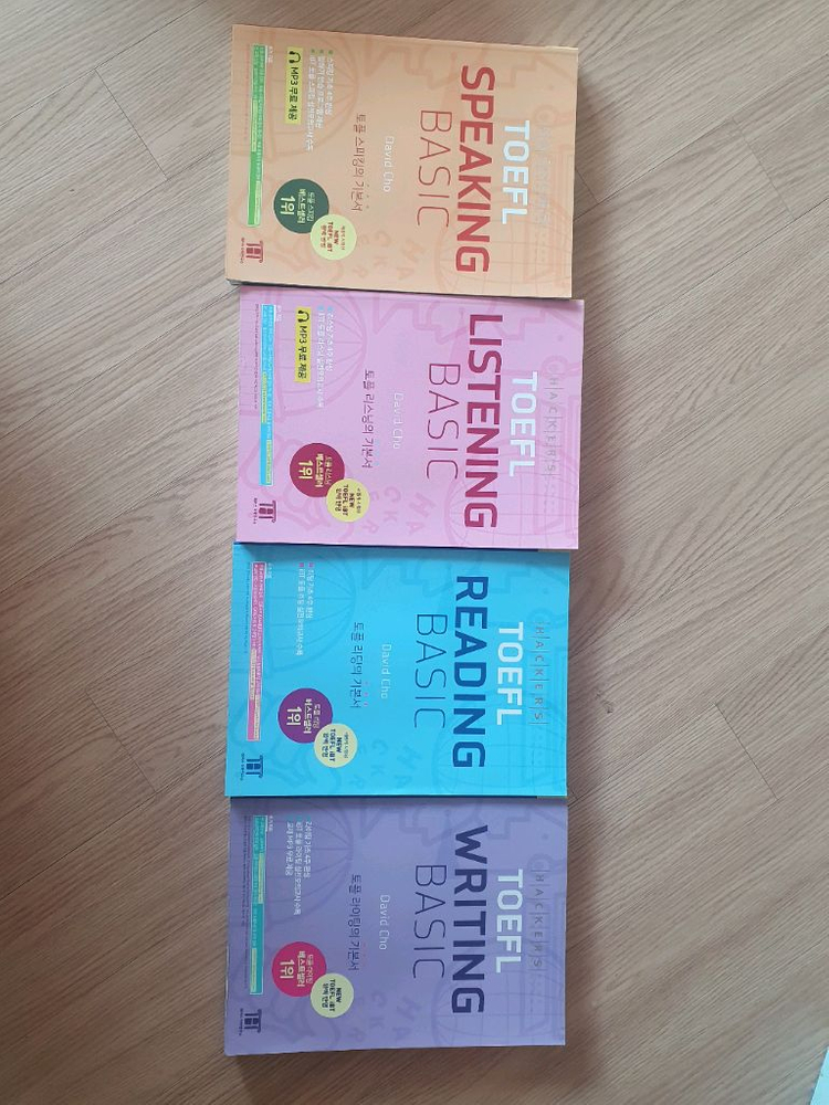 개인정보(거래정보)를 주고받는 행위는 사기에 노출될 수 있으므로 즉시 중고나라로 신고해 주세요영어시험 기초 교재 4권 세트입니다. Speaking, Listening, Reading, Writing 구성으로 되어있고 스피킹, 리스닝은 깨끗하고 라이팅, 리딩은 앞부분 필기감 있으나 상태는 양호해요. 영어시험 준비하시는 분께 추천드립니다!