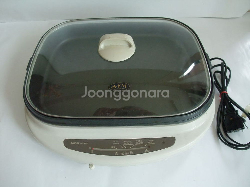 ● 판매제품정보 *상품명 : (일본) 가전제품 여러가지 *전 원 : 모두 100V용 (국내에서 사용시는 변압기가 필요 합니다) *참 고 : 일본에서 구입하여 사용하던 것으로 사용감이 있으나, 작동에는 문제 없습니다. *연락처 : 010-8590-공팔사팔 (1) 핫 프레이트 *메이커 : 일본 SANYO(1992년) *제조국 : Made in Japan *모델명 : HPS-V57G *사이즈 : 팬 크기(가로)41 (세로)32 (높이)5 cm *상 태 : A급 *판매가 : 7만원(택포) (2) 전기모포 *메이커 : 일본 NATIONAL *모 델 : DB-196 *사이즈 : 175×30cm(싱글) *판매가 : 4만원(택포) (3) 믹서 *메이커 : 일본 ZOJIRUSHI *제조국 : Made in Japan *모델명 : BM-FX08 *용 량 : 약 750 ml *사이즈 : (가로)16.5 (세로)17.5 (높이)35 cm *부 품 : 설명서, Mill용기 셋트, Mill용기 두껑 셋트 *상 태 : A급 *정 가 : 6,400엔(약 65,000원) *판매가 : 4만원(택포) (4) 생선구이기 *메이커 : 일본 NATIONAL *제조국 : Made in Japan *모델명 : NF-RT300 *상 태 : B급(작동에 아무 문제 없음) *일본정가 : 17,500앤 *판매가 : 4만원(택포) (5) 커피 메이커 *메이커 : 일본 ZOGIRUSHI *제조국 : Made in Japan *모델명 : EC-VL60 *용 량 : 810ml(5~6인분) *상 태 : A급(설명서, 스푼 포함) *일본정가 : 27,200앤 *판매가 : 5만원(택포) (6)토스터 *메이커 : 일본 NATIONAL *제조국 : Made in Japan *상 태 : B급 *판매가 : 4만원(택포) (2) 전기모포 *메이커 : 일본 NATIONAL *모 델 : DB-196 *사이즈 : 175×30cm(싱글) *판매가 : 4만원(택포) (3) 믹서 *메이커 : 일본 ZOJIRUSHI *제조국 : Made in Japan *모델명 : BM-FX08 *용 량 : 약 750 ml *사이즈 : (가로)16.5 (세로)17.5 (높이)35 cm *부 품 : 설명서, Mill용기 셋트, Mill용기 두껑 셋트 *상 태 : A급 *정 가 : 6,400엔(약 65,000원) *판매가 : 4만원(택포) (4) 생선구이기 *메이커 : 일본 NATIONAL *제조국 : Made in Japan *모델명 : NF-RT300 *상 태 : B급(작동에 아무 문제 없음) *일본정가 : 17,500앤 *판매가 : 4만원(택포) (5) 커피 메이커 *메이커 : 일본 ZOGIRUSHI *제조국 : Made in Japan *모델명 : EC-VL60 *용 량 : 810ml(5~6인분) *상 태 : A급(설명서, 스푼 포함) *일본정가 : 27,200앤 *판매가 : 5만원(택포) (6) 토스터 *메이커 : 일본 NATIONAL *제조국 : Made in Japan *상 태 : B급 *판매가 : 4만원(택포)