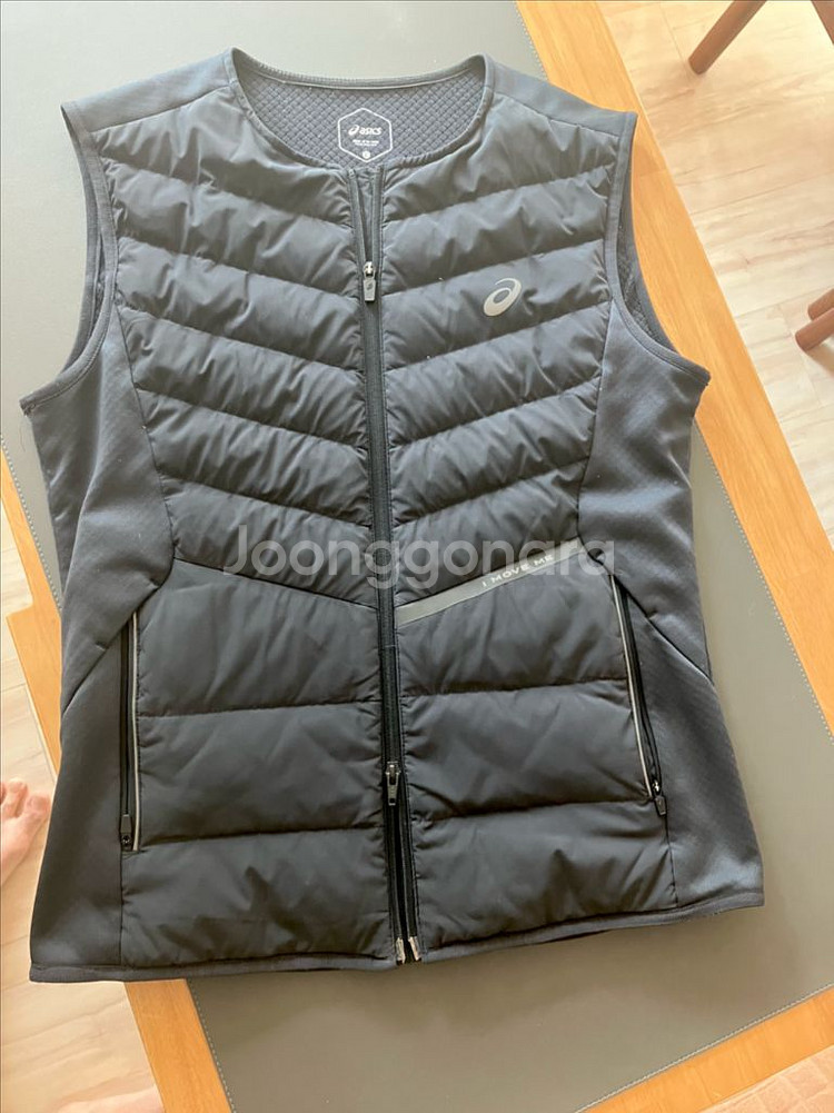 - 겨울 러닝용 다운 down 패딩 베스트 - 러닝 뿐 아니라 일상레저용으로도 가볍고 따뜻해서 good - 전면은 도톰한 down 패딩, 후면은 보온 및 땀 발산을 위한 격자형 소프트 기모 - 지퍼형 앞주머니 - 브랜드: 아식스 - 사이즈: L(100) - 색상: 다크 그레이 원래 제품엔 단방향 지퍼였고, 러닝시 통풍 편의성을 위해 3만원 주고 양방향 지퍼까지 달아놨습니다. 상태는 물론 좋지요. 사진 참고해주세요