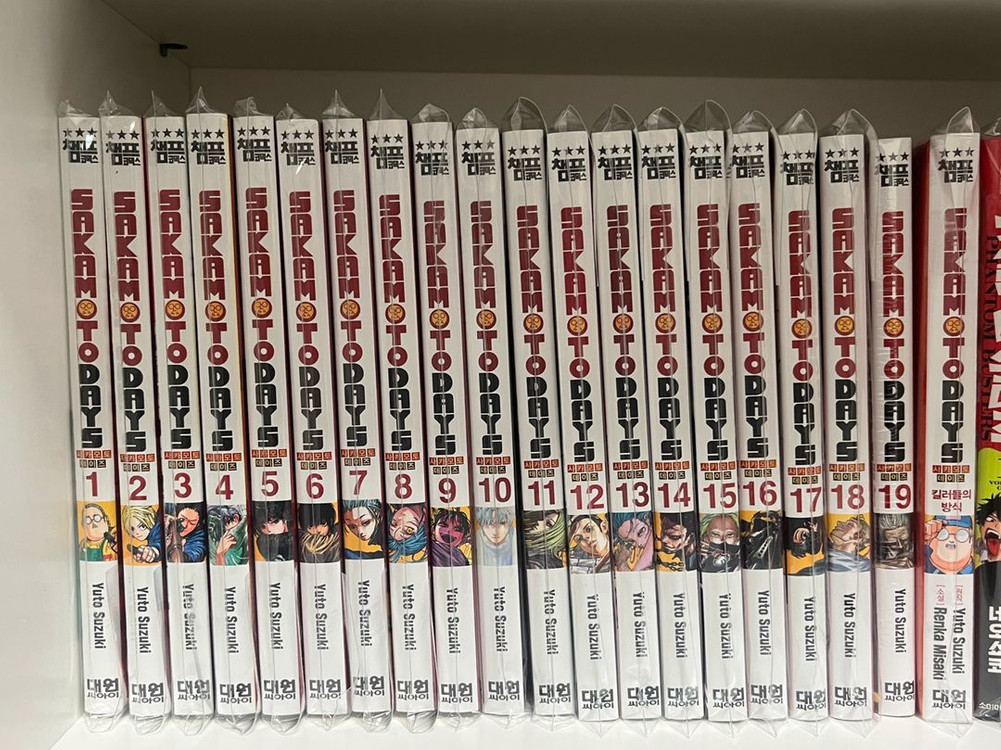 사카모토 데이즈 1-19권 + (소설) 킬러들의 방식 1-18권, 소설 개봉 / 19권 (미개봉) 택포 9만원(편택) 한번 읽고 바로 opp보관한 책들입니다 액션이 시원시원한 만화입니다😊