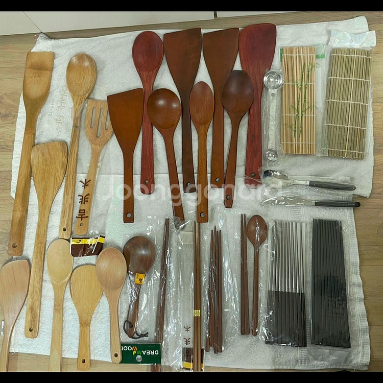 옻칠 볶음기, 뒤집기, 김밥 발, 옻칠 수저세트, 튀김젓가락, 양식 커트러리, 업소용 젓가락, 계량스푼 1-4번: 각 1500원 5-8번,19번: 각 1000원 9-16번: 각 2500원 17-18번 : 각 2000원 20-21번: 각 2500원 22-23번: 각 1000원 24-26번: 각 1500원 27번: 각 4000원 28번: 각 7000원 29-30: 각 1000원 원하시는 상품번호,갯수 말씀해주세요 ✨꼭 읽어봐 주세요.✨ 10000원 이상부터 구매가능합니다. 3만원 이상 구매시 10프로 에눌해드려요. 1-4번, 5-8번,19번은 원목입니다. 나머지는 옻칠된 주방용품입니다. 사이즈는 사진상 줄자로 확인부탁드려요.