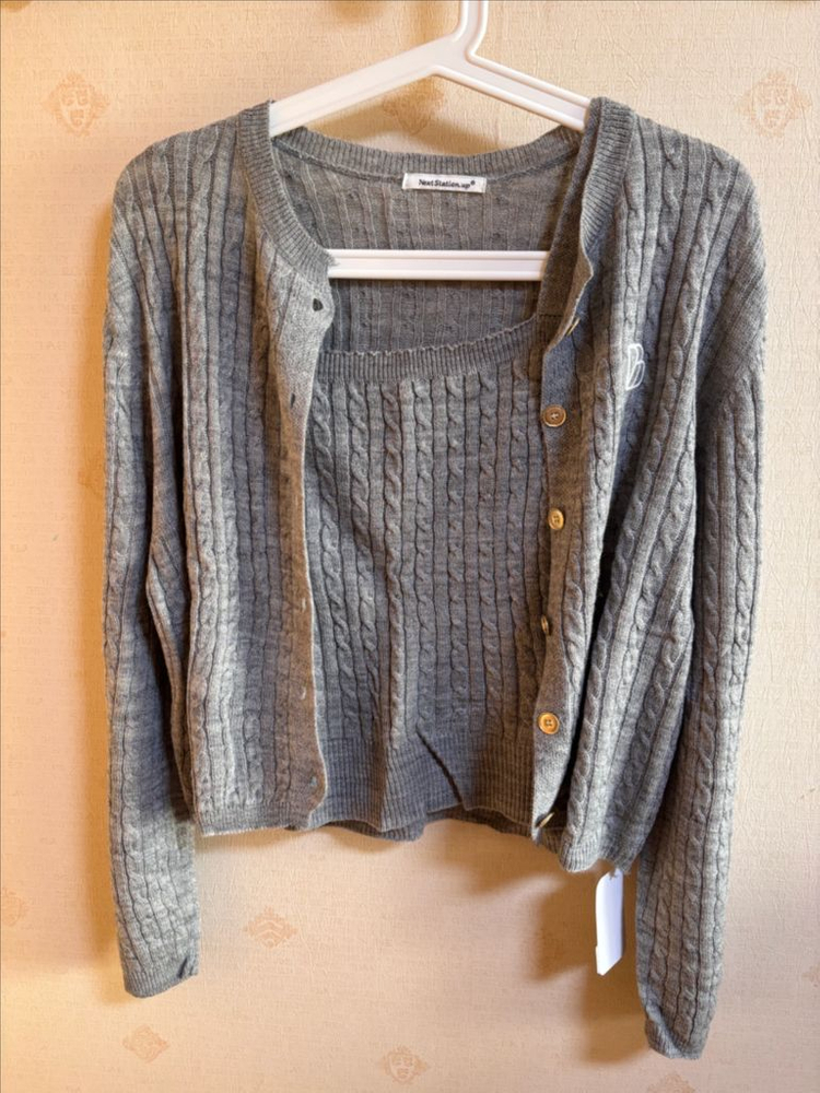 가디건 어깨40 총장50 나시 어깨36 총장50 그레이색 골지 니트 가디건 & 나시 세트 신축성 좋고 면 부드러워요 gs편의점반값택배 + 2000₩ 일반택배 + 4000₩