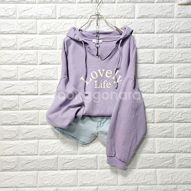 프리사이즈입니다 (77언냐들 가능해요) 연보라색 후드티셧입니다 앞면에 'Lovely Life' 레터링이 포인트로 들어가 있어요 넉넉한품에 편안하면서도 스타일리시하게 연출하기 좋습니다 면 소재로 착용감이 부드럽고, 캐주얼하게 입기 좋아요 상태양호합니다 가슴반품 65 길이. 61 반품환불 안대요 신중구매주세요