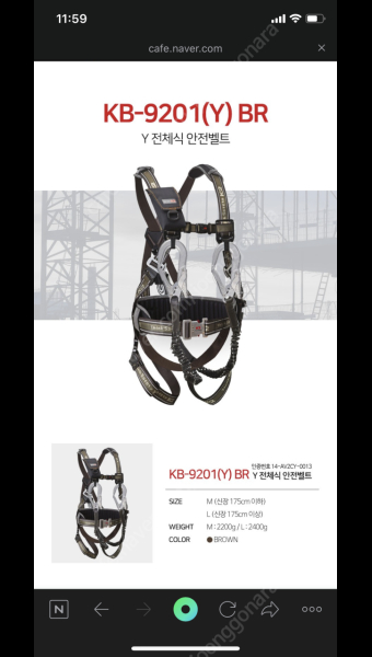 K2세이프 안전벨트 두줄고리 브라운