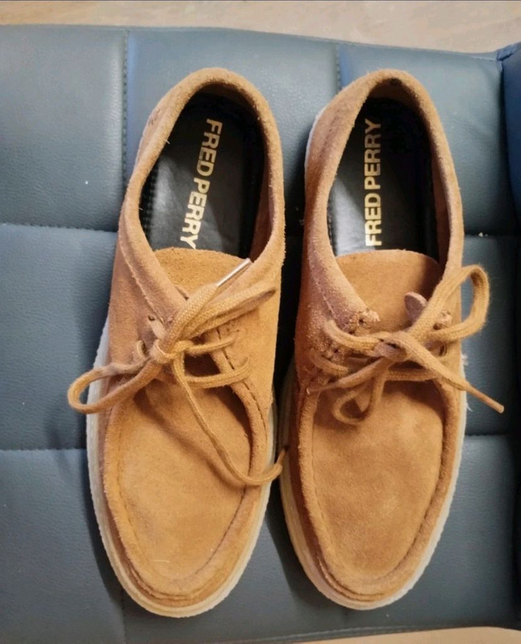개인정보(거래정보)를 주고받는 행위는 사기에 노출될 수 있으므로 즉시 중고나라로 신고해 주세요프레드페리 정품 스웨이드 레더 슈즈예요. 브라운 컬러에 끈이 묶인 클래식한 디자인이 멋스럽고, 전체적으로 깔끔한 상태입니다.