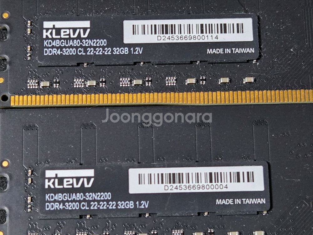 에센코어 KLEVV DDR4-3200 CL22(양면) DDR4 32GB 메모리 2개 총64GB 구성으로 게이밍이나 작업용으로 좋을 것 같아요. 상태 양호하고 정상 작동 확인했습니다.