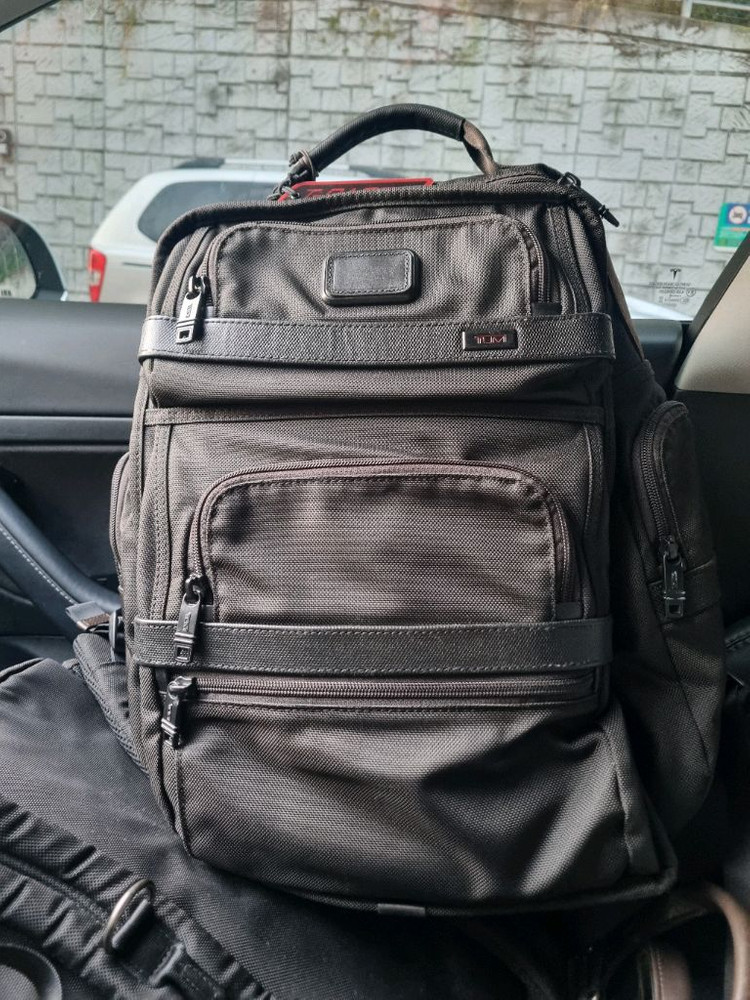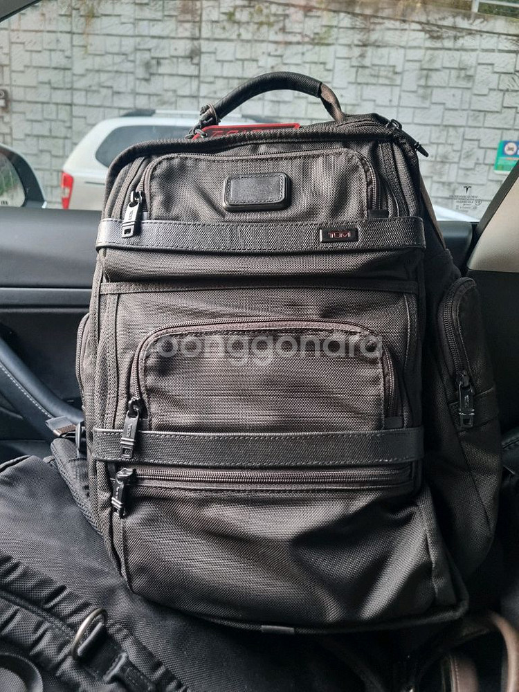 투미 브랜드의 블랙 컬러 티패스백팩입니다. 여러 포켓과 수납공간이 있어 비즈니스용으로 활용하기 좋고, 전체적으로 깔끔한 상태예요.