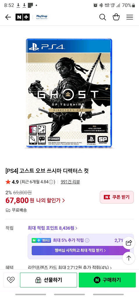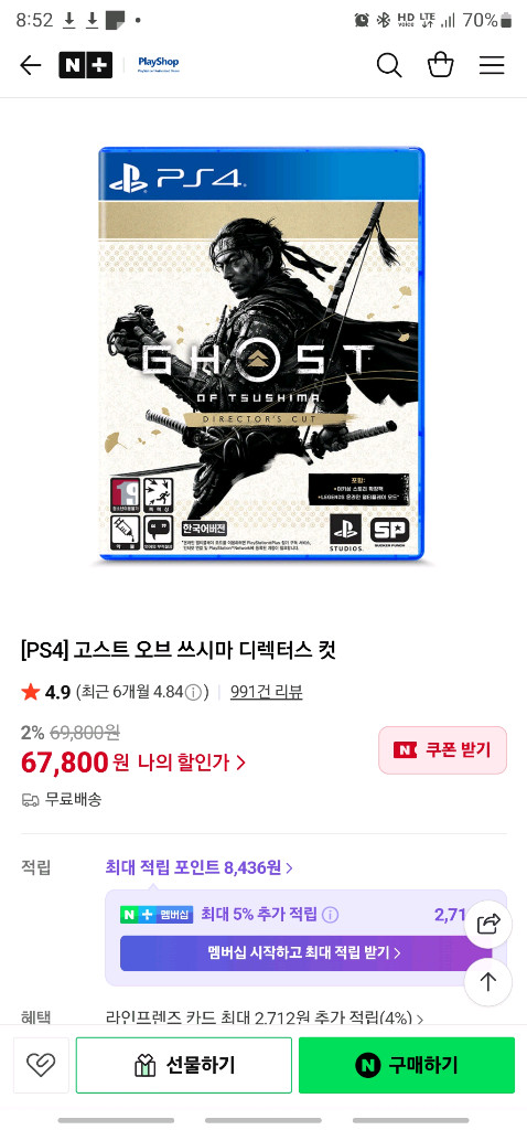 PS4/ps5 고스트 오브 쓰시마 디렉터스 옵션이에요. 게임 좋아하시는 분께 추천드려요! 직거래는 대전 서구