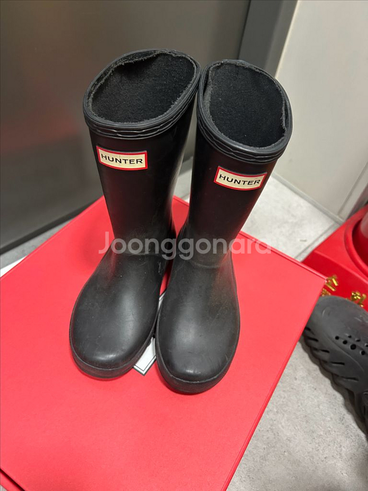 헌터 키즈 레인부츠 블랙, 옐로우 색상입니다 사용감 있어용 사진으로 상태 확인해주세요 블랙 10 / 옐로우 11 사이즈 입니당 깔창이 없어서 싸게 팔아용 ㅜㅜ 반값 2000 / 일반 3800